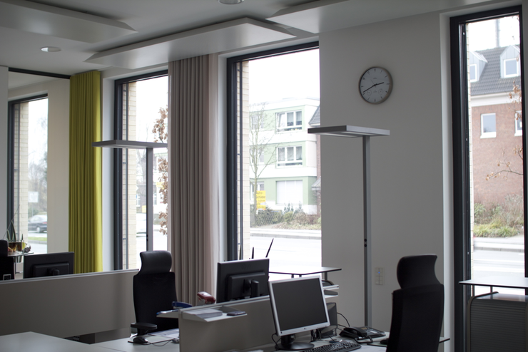 Im neuen Verwaltungsgebäude des Bauvereins zu Lünen tragen unsere Vorhangstoffe zu einer schönen Atmosphäre bei. Planung: Schreiter Architekten